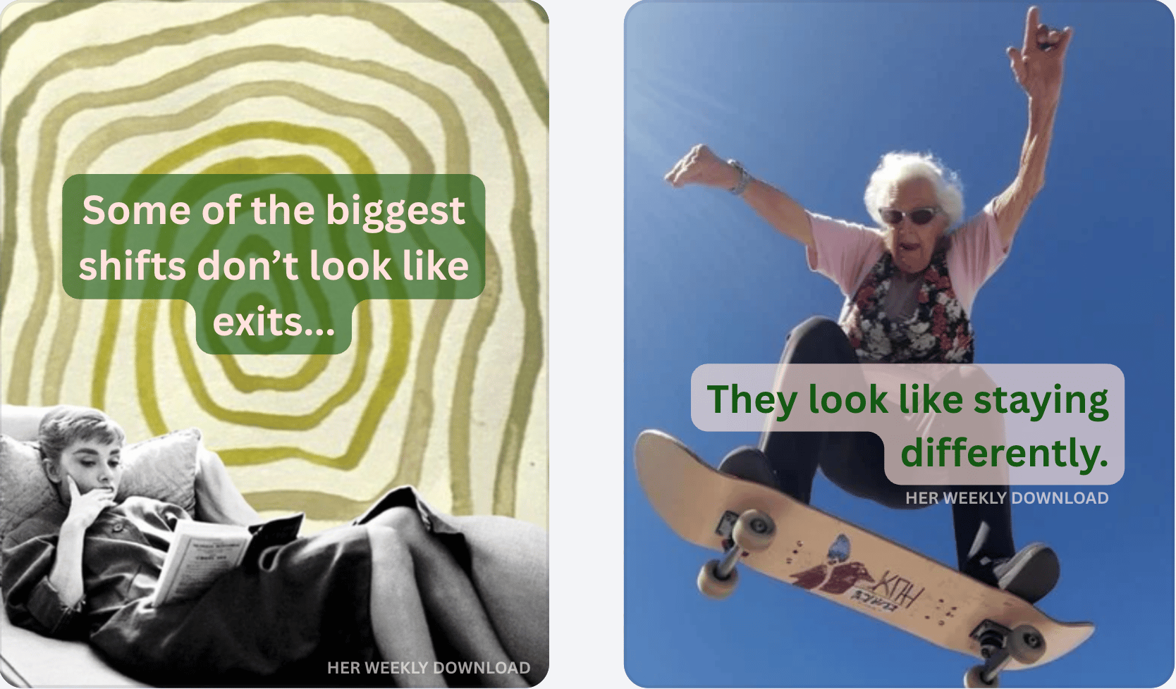Her Weekly Download arrives three times a week – for women rewriting the rules without always walking away.